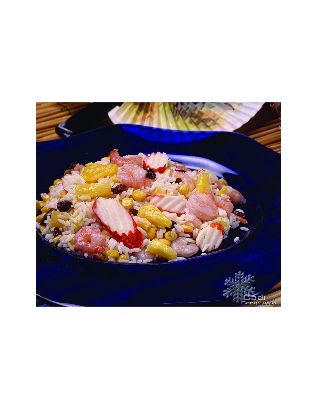 Ingredients: Arròs, blat de moro, cua de gamba pelada i cuita, pinya, surimi (carn de peix, sucre, aigua, midó de blat, clara d'ou, oli de girasol, sal, aroma, conté peix i crustacis) i panses. Conté ou, peix, crustacis i cereals amb gluten. Elaborat en una fabrica que treballa amb fruita seca de pela, sulfits, llet, soia, api i mol·luscs.