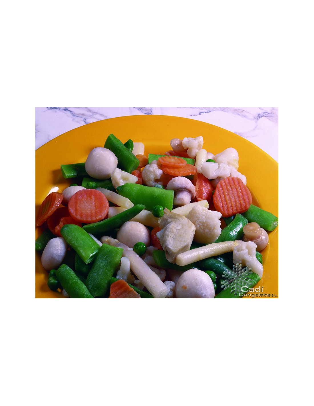 Ingredients: Mongeta perona, pastanaga, pésol, carxofa, xampinyons, espàrrec blanc i coliflor.