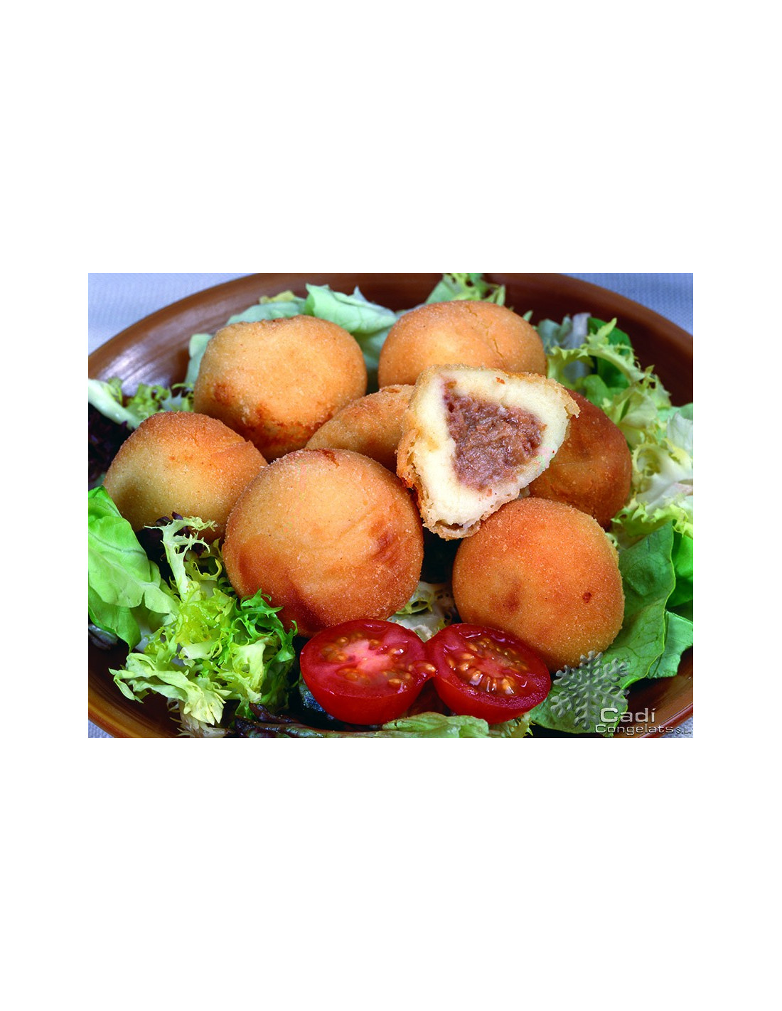 Ingredients: Flocs de patata, carn de boví, gallina, porc, pa ratllat, farina de blat, aigua, llevat, sal, carn de pollastre, sèrum làctic en pols, pebrot, ceba, oli de soia, concentrat de tomàquet, espècies. Produït en una planta que per a altres productes empra: crustacis, ou, peix, cacauet, api, mostassa, sèsam, altramuces i mol·luscs.