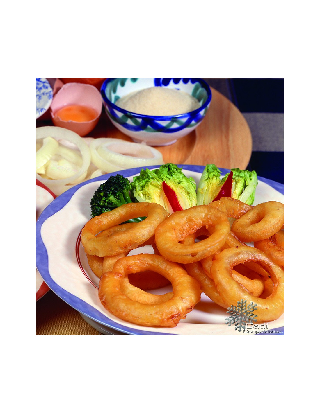 Ingredients: Ceba, arrebossat (aigua, farina de blat, oli de girasol, midó de blat de moro, midó de blat, sal, llevat). Pot contenir traces de : PEIX, MOL·LUSCS, CRUSTACIS I LÀCTICS.