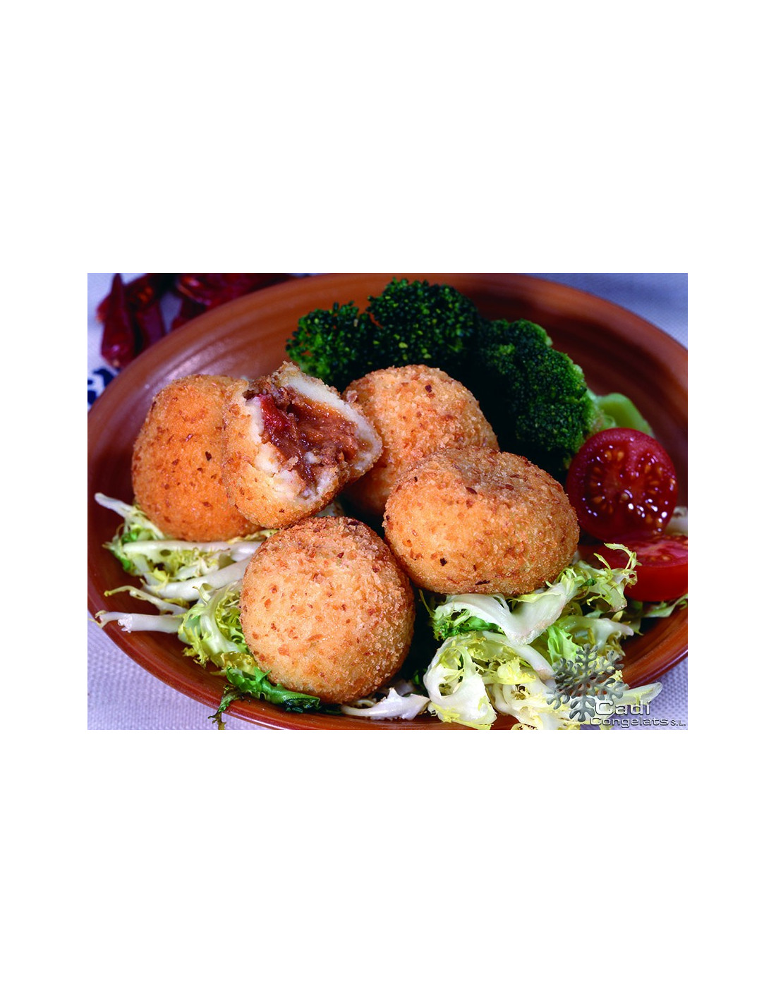 Ingredientes: Copos de patata, carne de vacuno, gallina, cerdo, pan rallado, harina de trigo, agua, levadura, sal, carne de pollo, suero lácteo en polvo, cebolla, aceite de soja, concentrado de tomate, especies. Producido en una planta que para otros productos emplea: crustáceos, huevo, pescado, cacahuete, apio, mostaza, sésamo, altramuces y moluscos.